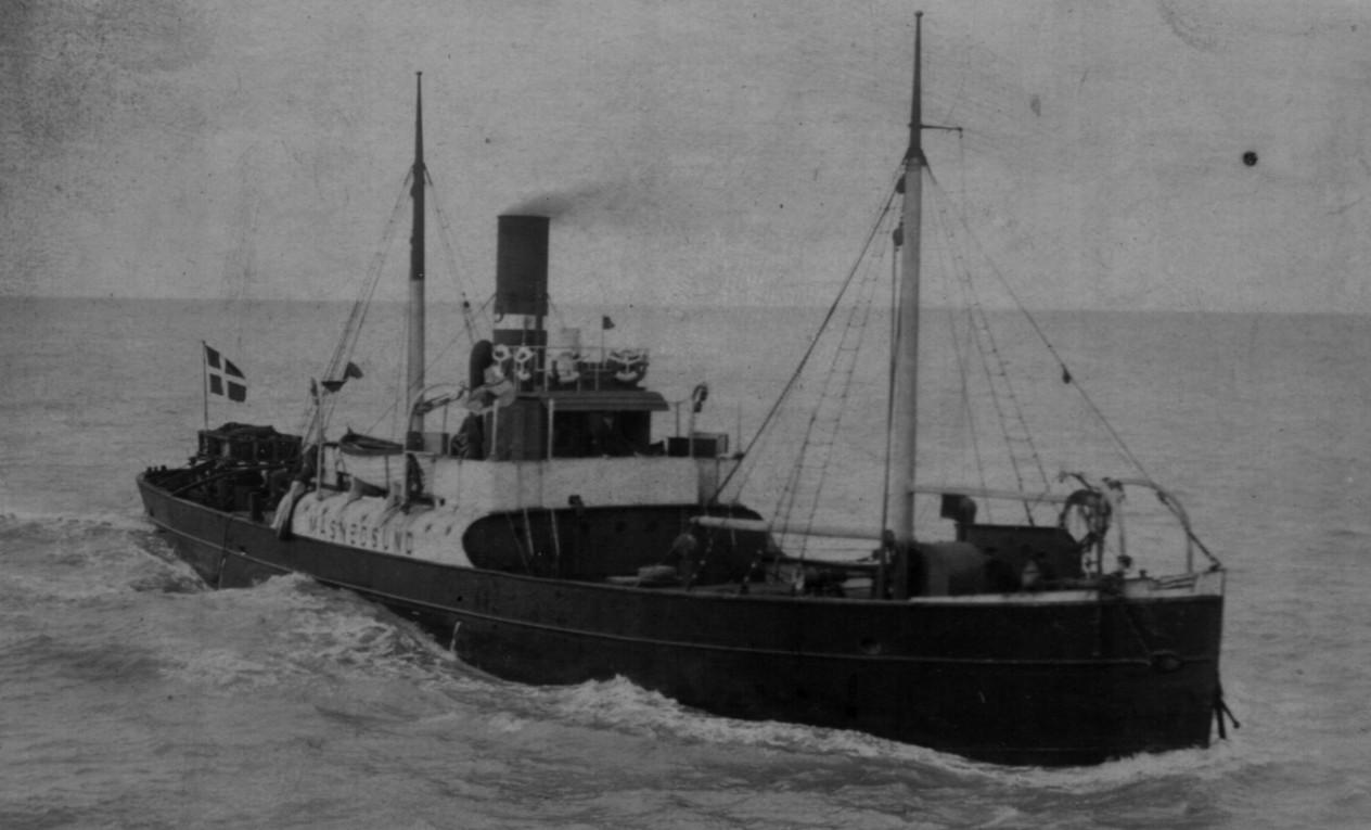 Enlargement indicates a name of Masnedsund painted on the side. |